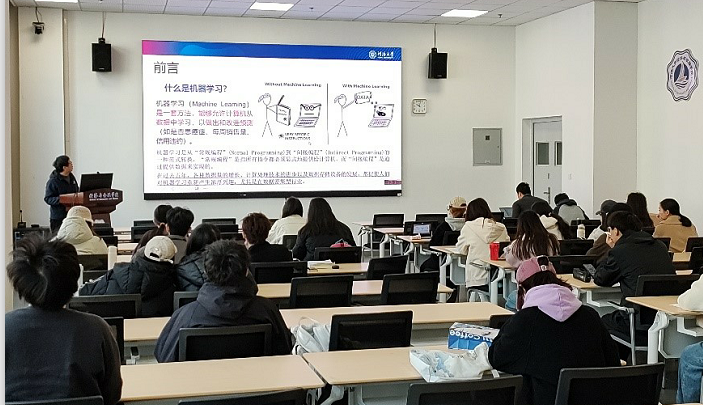 学院周伯乐老师向全体参与人员介绍了易兆强老师的研究方向及此次讲座的主要内容。接着,易兆强老师介绍了机器学习、可解释机器学习以及SHAP算法;并结合自己研究成果介绍了SHAP算法的应用,包括机器学习模型拟合、SHAP局部和全局解释等。最后,易兆强老师结合自己的研究经历向大家分享了机器学习算法学习及其应用经验,并与现场师生展开了深入探讨。