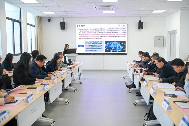 河海大学经济学系党支部书记王亚楠副教授从专业定位、师资队伍、培养方案、教学条件、教学规范与质量保障等多个维度汇报了自评情况,着重展示了“水经数融合”课程体系、“双师双能”师资建设以及校企协同育人等方面的举措与成果。