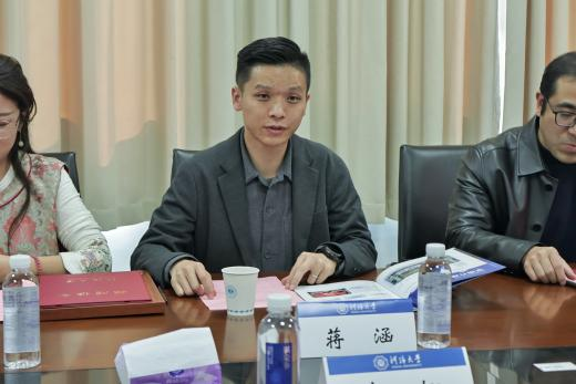 蒋涵校友回顾了他从新疆远赴江苏求学,在国家创业政策与学校支持下在校创业的经历。他表示,学校和老师给予的充分包容是他能够兼顾创业与学业的关键,毕业近10年,他始终心系母校,恰逢学校百十校庆,他希望通过捐赠的形式帮助学院搭建校内创业平台,为学生提供创新创业资金扶持,同时在未来进一步持续深化校企合作,打通学校与新疆的交流通道,助力人才培养与毕业生输送。